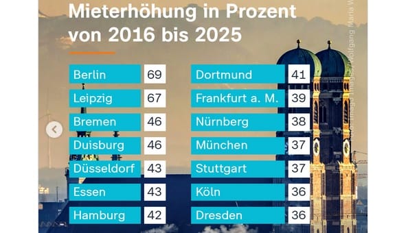 Mietbremse is clearly not working. The rents for non-furnished in mid-to-good areas are, on average, up almost 70% since 2016. The most expensive is Munich with €21.29/m2.